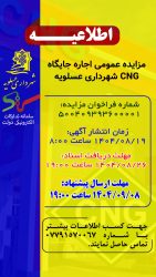 آگهی فراخوان مزایده اجاره جایگاه سوخت (CNG) شهرداری بندر عسلویه ۲۲ آبان, ۱۴۰۴ ادمین آگهی فراخوان مزایده اجاره جایگاه سوخت (CNG) شهرداری بندر عسلویه